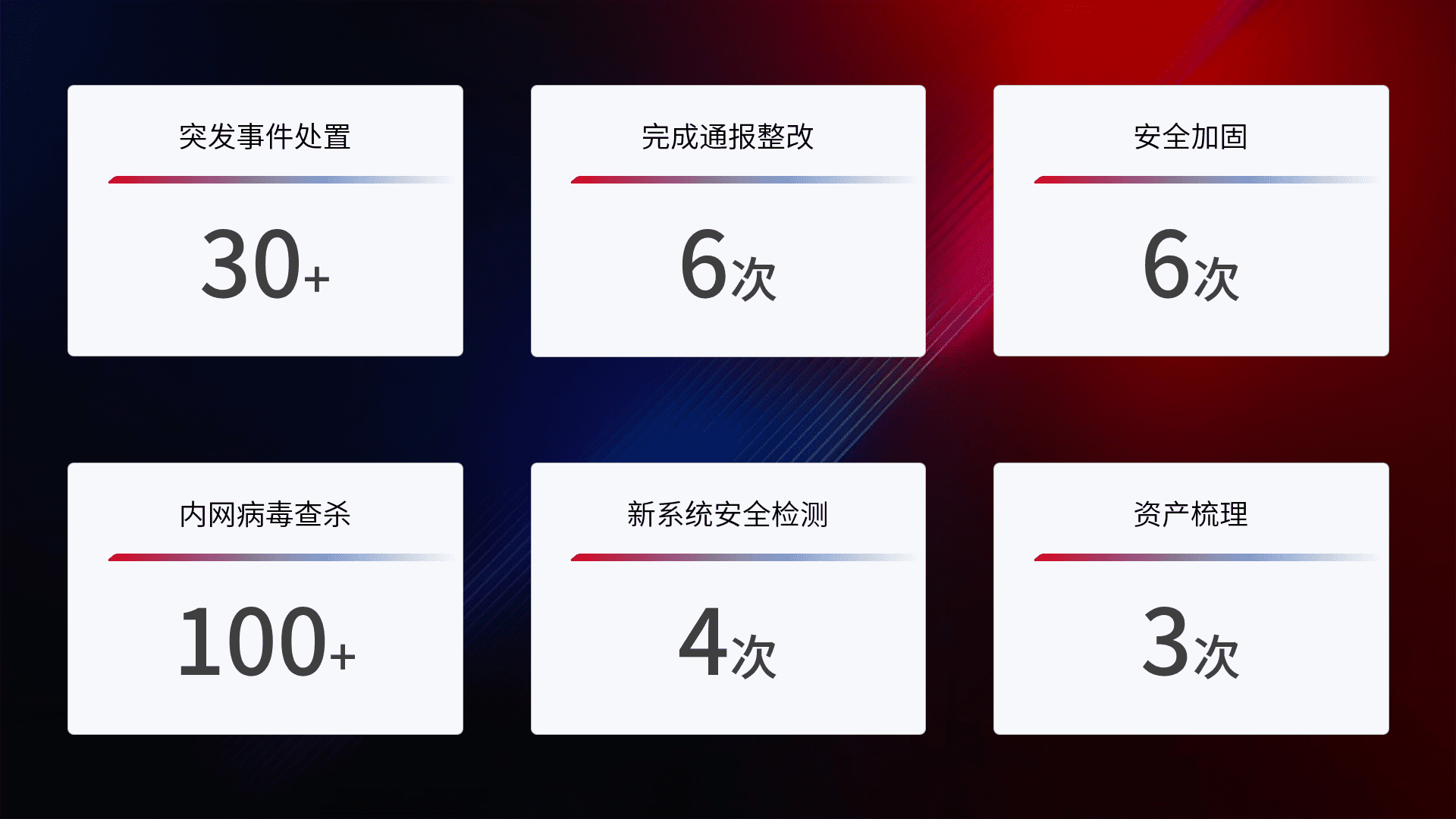 网络安全加固与风险管理:通过技术加固手段,,,如加强区域隔离,,,,缩减攻击内网横向移动的范围;优化现有网络安全管理制度,,降低网络威胁暴露面,,,减少被黑客攻击的可能性。。